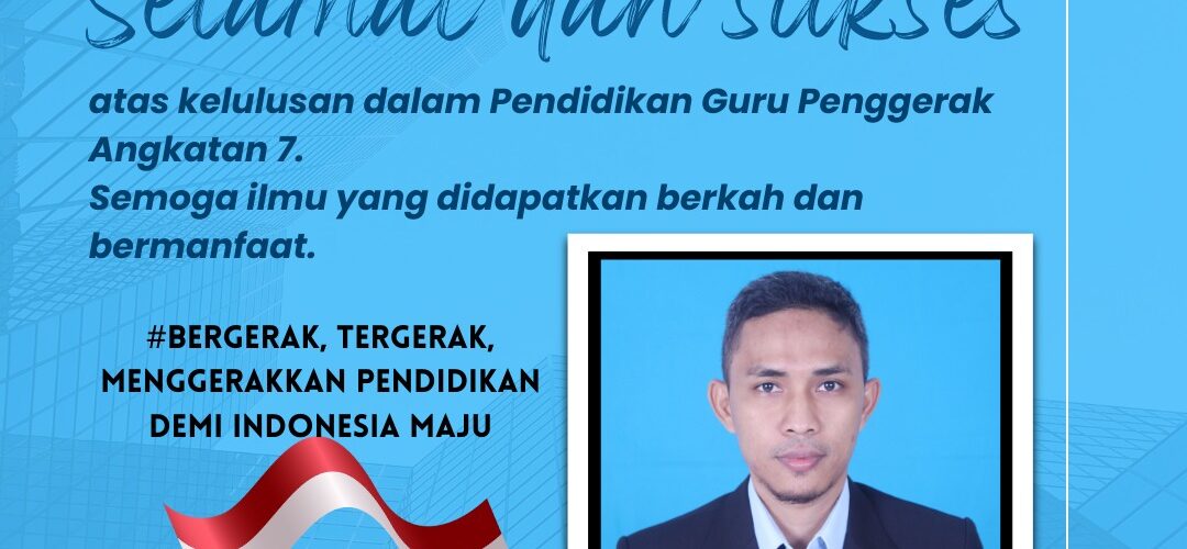 SELAMAT & SUKSES Kepada Bapak Heru Saputra,S.Pd. Gr atas Kelulusanya dalam Pendidikan Guru PenggerakAgustus 4, 2023 di Berita Pendidikan Oleh⣠Humas