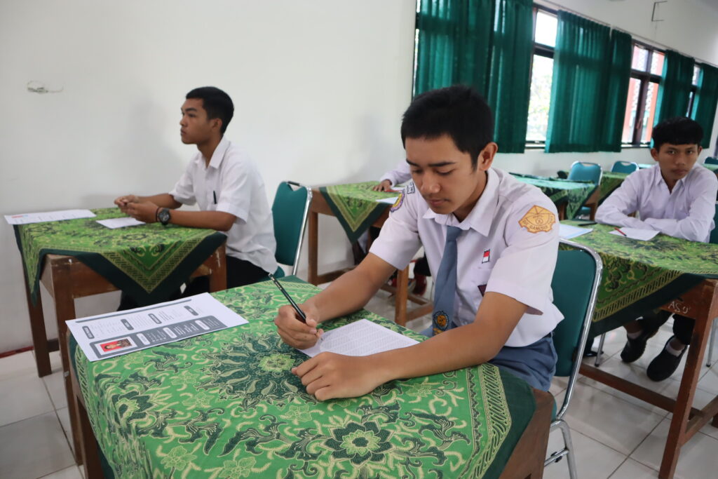 Sabtu, 23 September 2023 Tes tahap I dilakukan secara online melalui zoom meeting dari rumah masing-masing dengan di ikuti kurang lebih 80 peserta. selanjutnya Tes Tahap II dilakukan secara luring di gedung AULA Lantai.2 SMK Ganesha Tama Boyolali. Peserta yang hadir dalam tes luring kurang lebih 44 peserta dari masing-masing wilayah. Peserta terdiri dari tingkatan S1, SMK dan Khususnya siswa kelas XII SMK Ganesha Tama Boyolali juga mendapatkan kesempatan untuk mengikuti TES Rekrutmen tersebut.