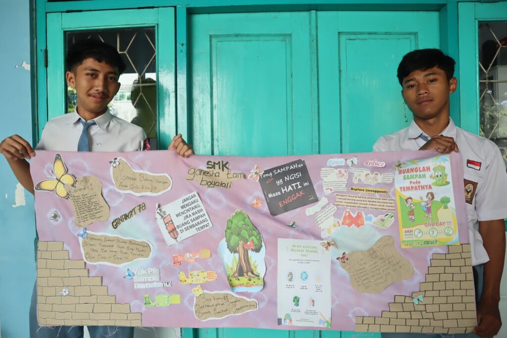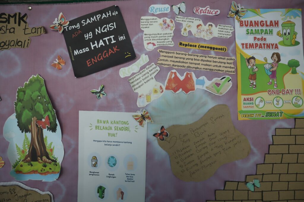 Untuk itu siswa siswi mengajak kepada seluruh warga sekolah untuk tidak membuang sampah sembarangan di lingkungan sekolah. Melalui kata-kata dan kalimat ajakan hingga motivasi yang di buat siswa untuk selalu menjaga kebersihan lingkungan dan ramah terhadap alam di sekitar dimana tempat kita berpijak di bumi ini.