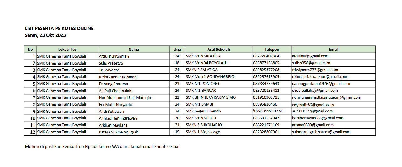 Hasil Psikotes Online Rekrutmen PT. Tri Putra Agro PersadaOktober 23, 2023 di Berita Pendidikan Oleh␣ Humas Berikut kami informasikan nama yang lolos ke tahap tes selanjutnyaPT. TRIPUTRA AGRO PERSADA Download PDF Terimakasih.