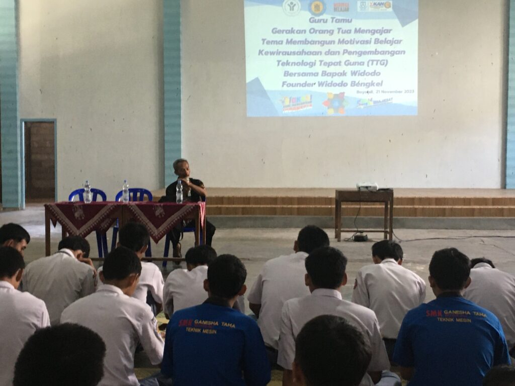 WEBSMKGTBI– Kegiatan Belajar Mengajar dengan orang tua sebagai guru tamu di sekolah.
