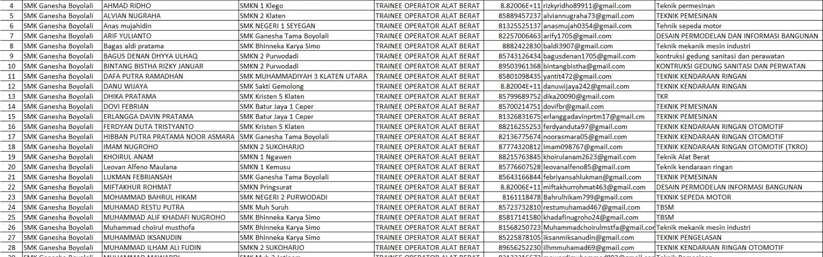 Yg mengikuti test ini khusus yg melamar posisi Trainee operator alat berat