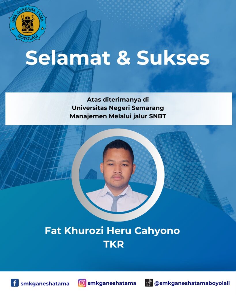 SELAMAT DAN SUKSES KEPADA FAT KHUROZI HERU CAHYONO ATAS DI TERIMANYA DI UNIVERSITAS NEGERI SEMARANG