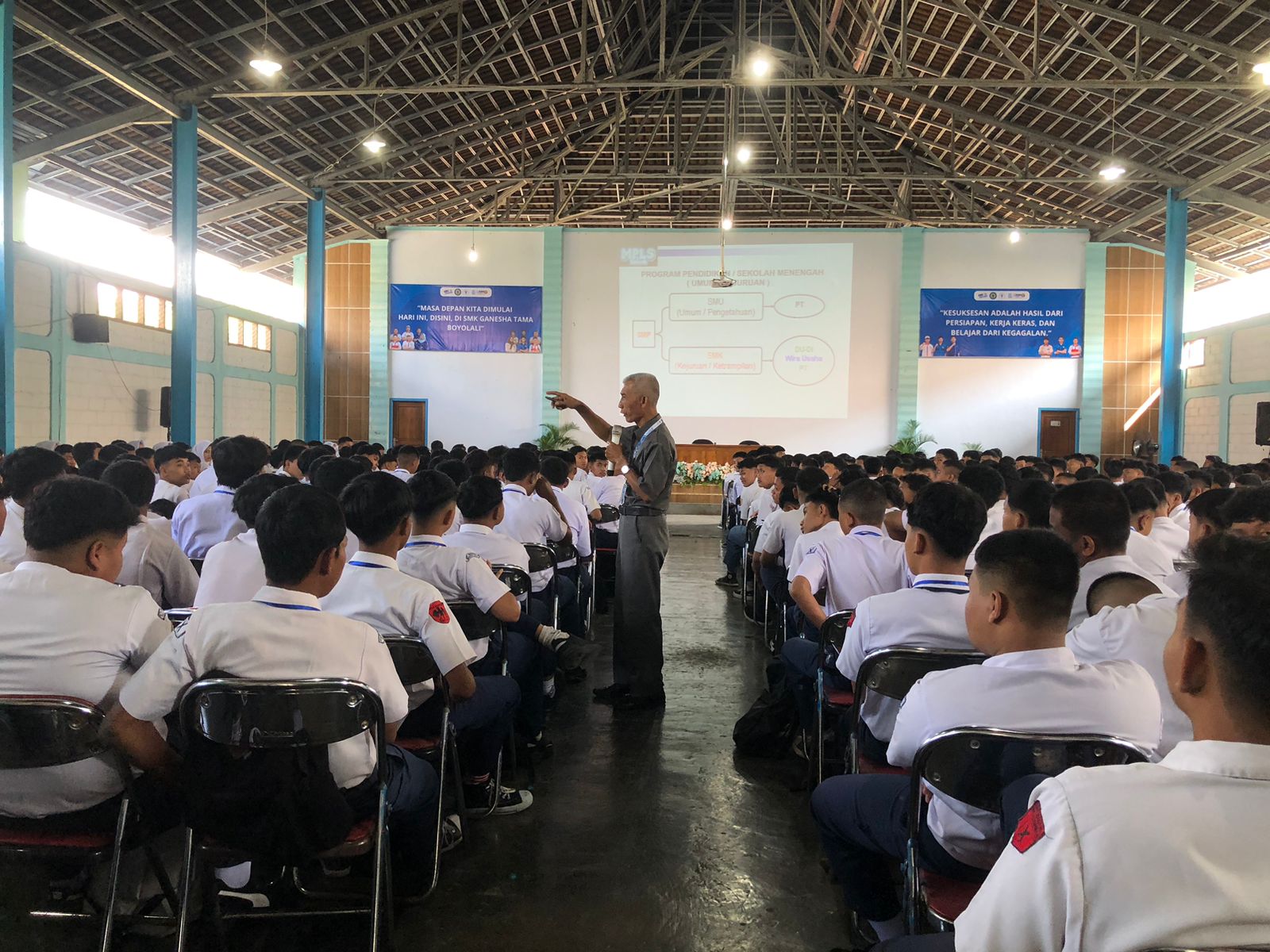 Pengenalan profil sekolah, visi dan misi sekolah serta manajemen yang berada di sekolah telah disampaikan oleh bapak kepala sekolah, diharapkan agar siswa dapat mengetahui bagaimana belajar di SMK Ganesha Tama Boyolali. Selain itu motivasi serta bimbingan di sampaikan oleh bidang kurikulum sekolah yang mana dalam kegiatan tersebut peserta didik di kenalkan mengenai 7 kebiasaaan anak Indonesia hebat, di tambah lagi pengenalan budaya industri dan tata tertib di sekolah yang wajib di patuhi oleh siswa siswi SMK Ganesha Tama Boyolali.