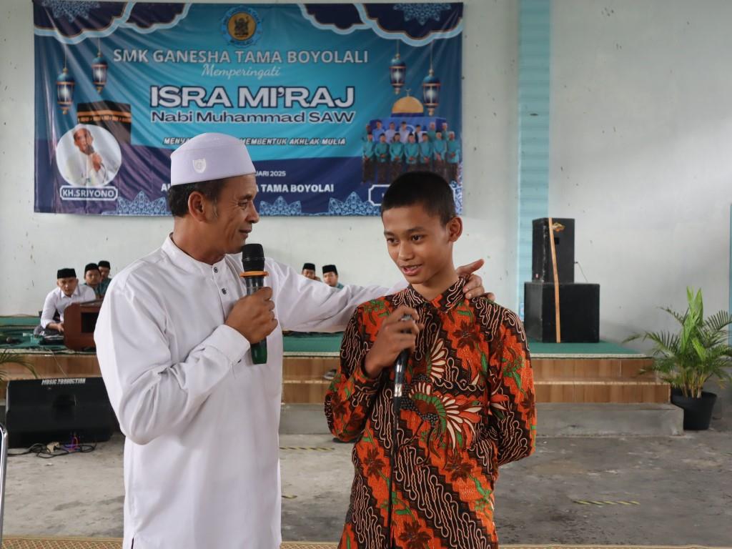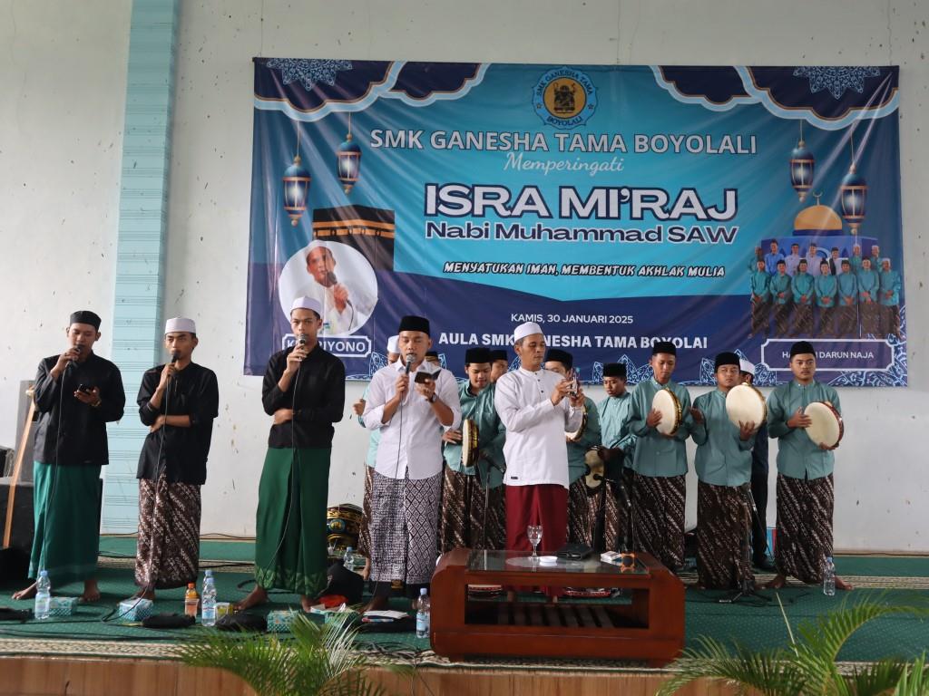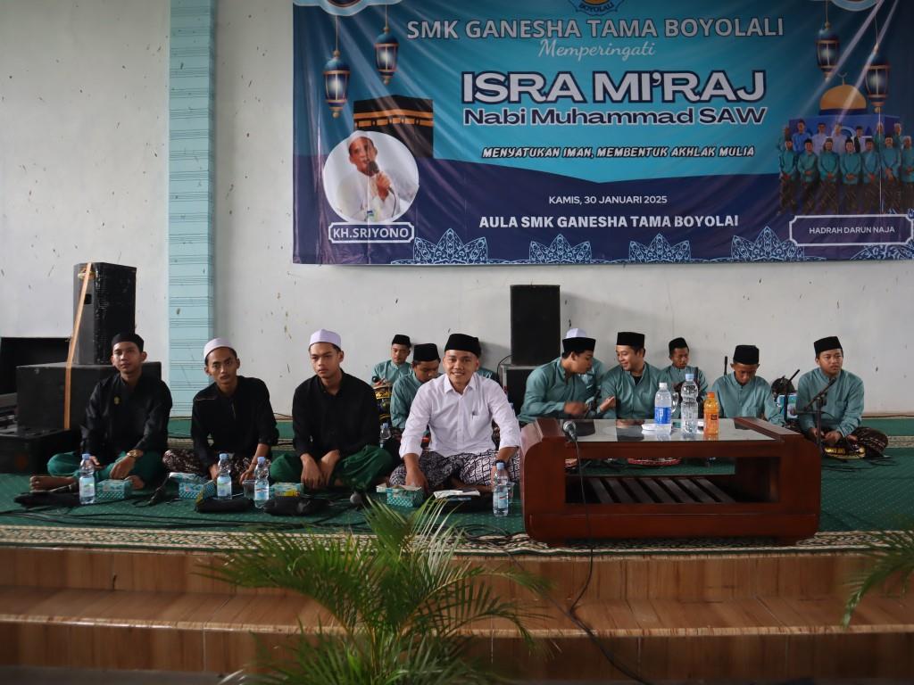 Memperingati Isra Mi’raj pada 30 Januari 2025, SMK Ganesha Tama Boyolali menyelenggarakan kegiatan tesebut di aula sekolah. Kegiatan ini menghadirkan KH. Sriyono sebagai penceramah yang dimeriahkan oleh grup hadrah Darun Naja dengan dan diikuti oleh seluruh warga sekolah. Dalam kegiatan tersebut mengusung tema “Menyatukan Iman dan Membentuk Akhlak Mulia”.