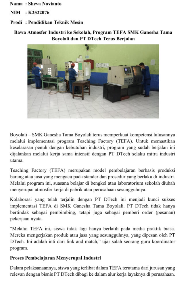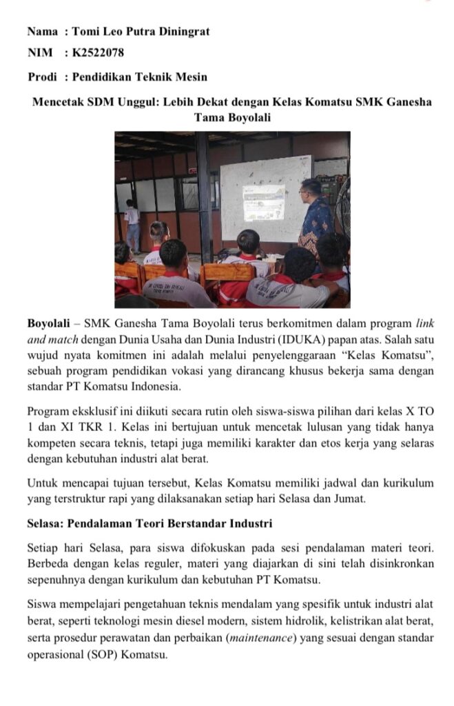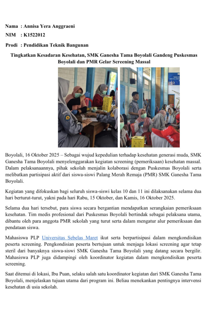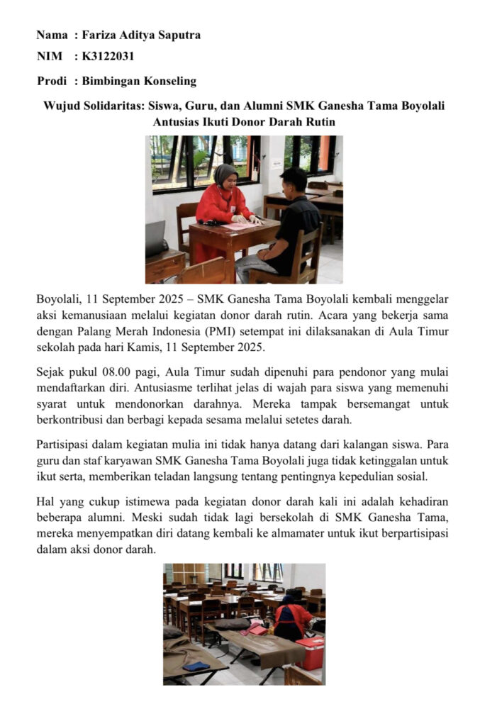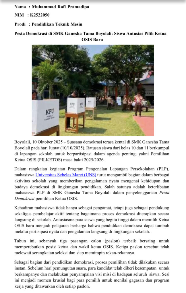 Berikut beberapa artikel kegiatan mahasiswa di SMK Ganesha Tama Boyolali: