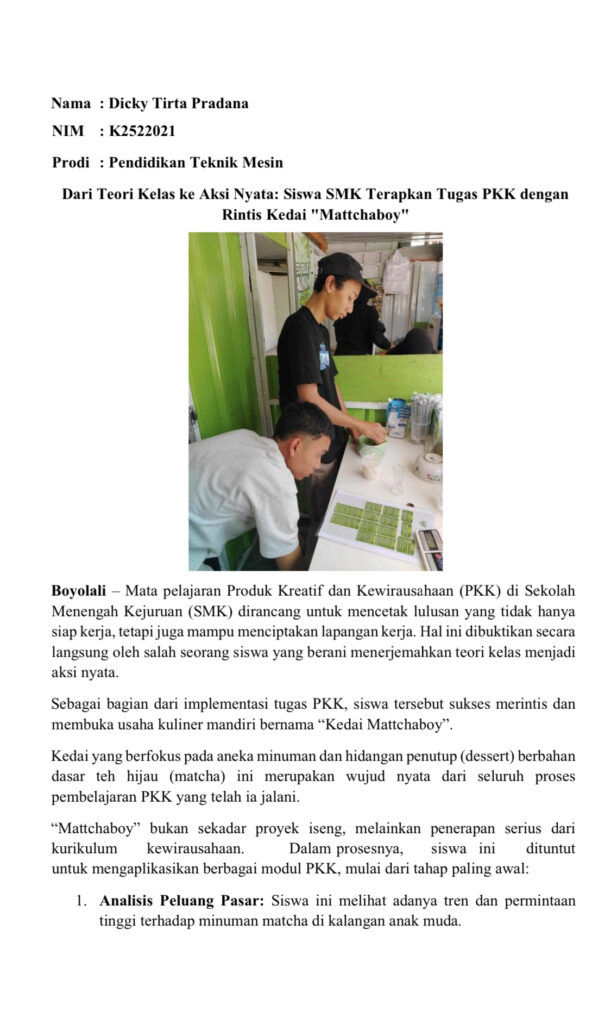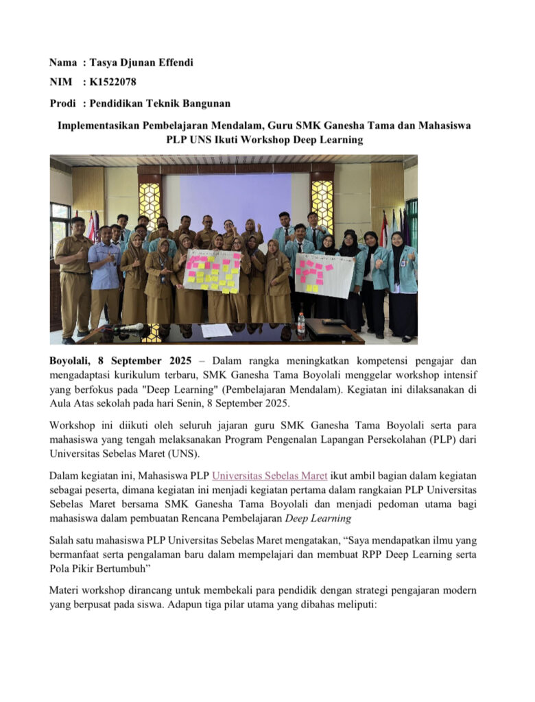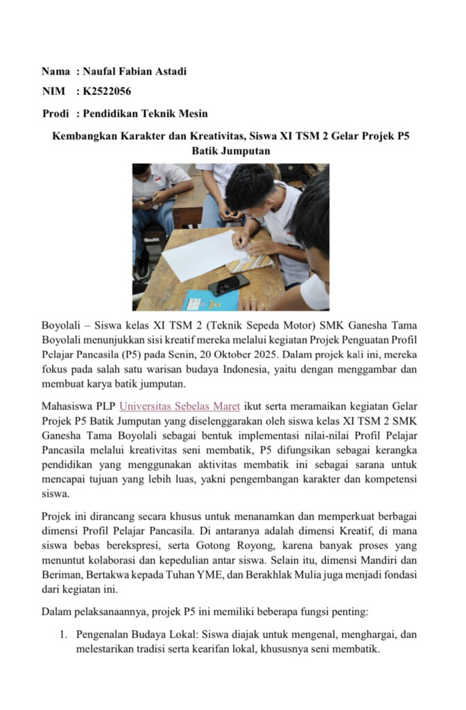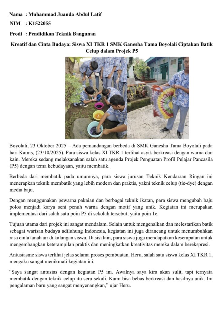 Berikut beberapa artikel kegiatan mahasiswa di SMK Ganesha Tama Boyolali: