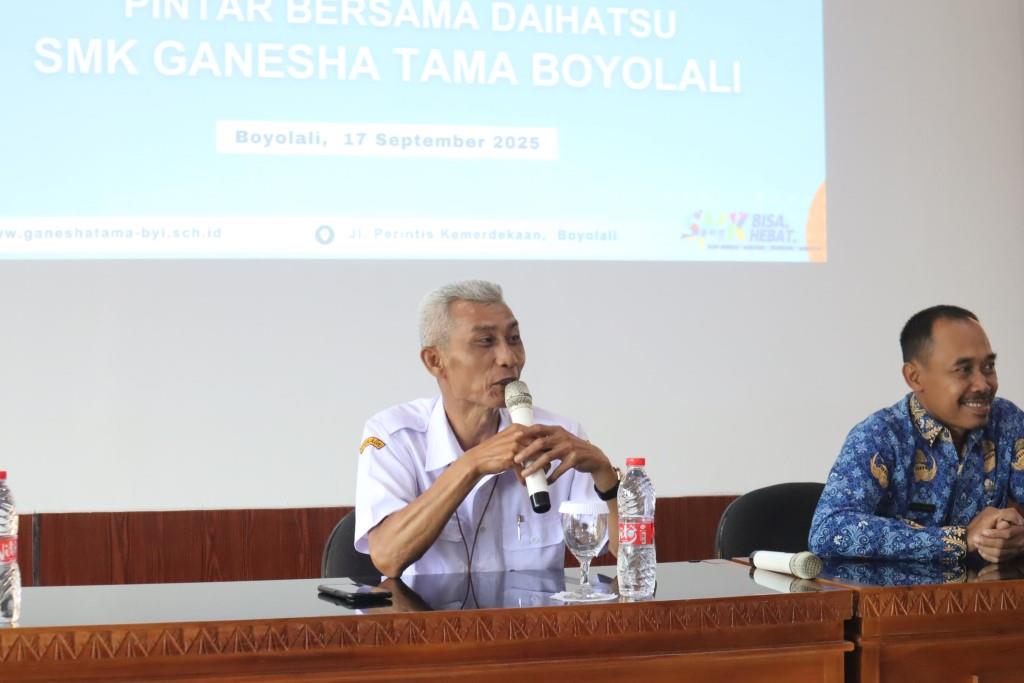 Kegiatan Musyawarah Guru Mata Pelajaran (MGMP) Teknik Otomotif Kendaraan Ringan dalam program Pintar Bersama Daihatsu (PBD) Area Solo Raya yang dilaksanakan di SMK Ganesha Tama Boyolali, tepatnya di ruang aula pertemuan lantai 2. Pertemuan rutin ini membahas mengenai pengembangan pembelajaran berbasis industri, pengembangan softskill dan hardskill untuk meningkatkan kompetensi guru.